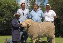 Google, a super fine wool ram belonging to William and Acton van Aardt of Fairworld Fine Wool, Cookhouse, Eastern Cape, recently sold for R200 000 at the Merino stud’s 27th ram auction.