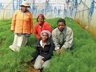 Fanie standing in a crop of green beans at the project. Severe weather, including hail, remains an ever-present threat to crops, he says.ity farming projects are not normally associated with organic production, let alone the export market. Yet these define the state-funded Rethabiseng Food Garden Project (RFGP), and its success could become a model for community- based projects hoping to grow organic produce. The 6ha farm, near Bronkhorstspruit east of Pretoria, has 15 tunnels, each 30m x 10m, and a packhouse. It is GlobalGap-certified and grows organically produced vegetables and herbs for retailers across Gauteng, as well as exporting fennel to Germany.