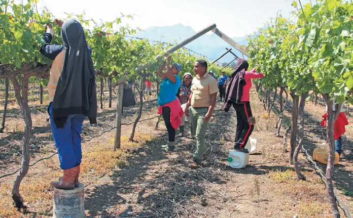 To alleviate the impact of new vineyards on his cash flow, Warren Bam, who farms table grapes on leased land near Saron in the Western Cape, works hard to ensure that his vines produce fruit the year after establishment.