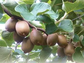 The woody, twining vines of kiwi fruit are grown in sunny areas protected from strong winds by netting.