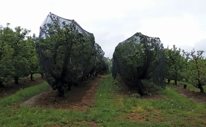 Brink explains that it is more difficult to use the nets effectively in hilly and uneven orchards.