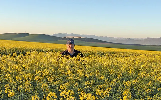 Canola forms part of Rust’s three-year rotation system, which comprises two consecutive wheat crops, followed by canola and mixed cover crops for cattle pasture and silage. He plants wheat on 2 100ha, canola on 800ha, and mixed cover crops on 500ha.