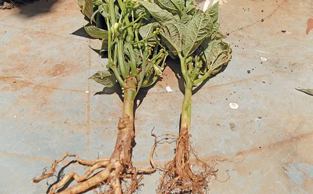 Some areas may be prone to damage by the bean fly. A small, black fly, this lays its eggs on the leaf near the petiole. The maggots tunnel down the petiole, enter the stem and head for the root. They return to ground level to pupate, causing a cracking and swelling just above soil level. Only systemic pesticides are effective against this pest; if it becomes a problem, seek advice from your crop chemical representative.