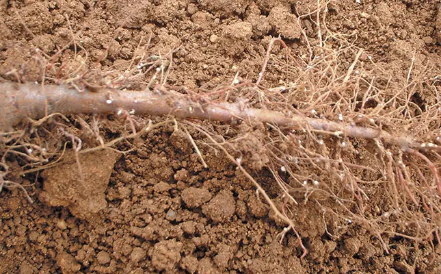Other eelworm species are more difficult to identify. For example, in the beet cyst eelworm, clear root symptoms may not be visible until the egg-laden females burst through the root walls to become visible as white specks.