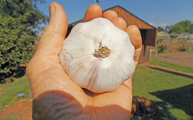 If you buy garlic for production, it is important to establish the source, as it may not sprout due to being irradiated. In addition, ensure that the planting material appears clean and healthy so as not to introduce disease onto the land. There are a number of specialist suppliers of garlic for planting purposes.