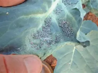 At this time of the year, these plants build up a large population before winged versions are produced and migrate to other plants. This aphid affects all the species of the cabbage family. It usually starts on the underside of leaves, causing them to curl, thereby protecting the aphids to some extent. White blemishes are left on the leaves and remain long after the aphids have been killed off.
