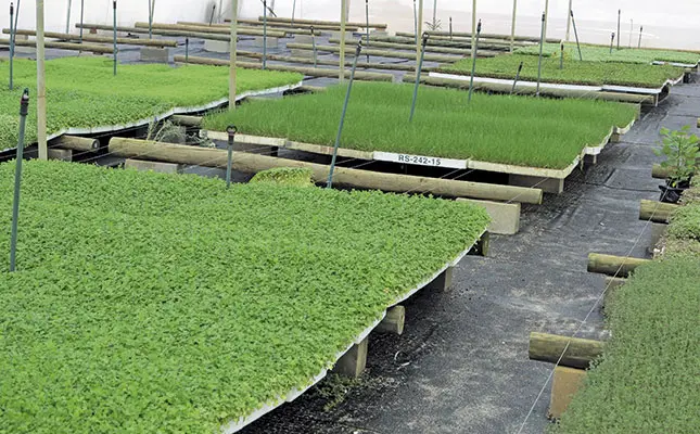 “In summer we buy in seedlings; in winter we plant our own seedlings and have a seed-planting machine. We’re planting basil now for winter, and although it struggles, it’s worth a try. Basil and sage don’t like winter.