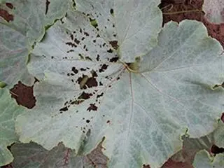 Another sign of boron deficiency is yellowish, thin tissue in the region of the ‘tears’. It is these areas which develop into holes. Caterpillar damage will not cause this. The problem is easily solved by preventative sprays of Solubor at 1kg/ ha on a few occasions. Boron is a sporadic problem and closely linked to climatic and soil conditions. The symptoms may therefore appear and then disappear.