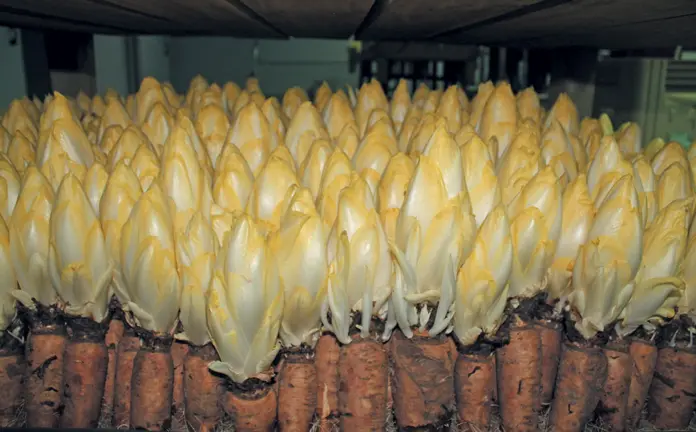 The process must take place entirely in the dark so that the shoots that form on the roots remain white.