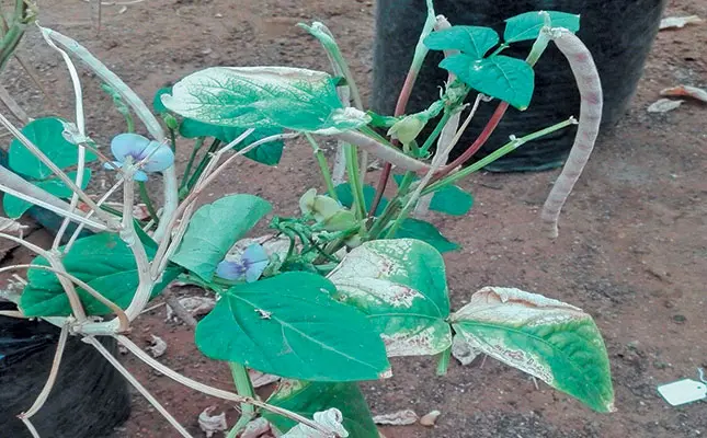 The disease can be managed in several ways: cultural practices, intercropping cowpea with maize or cassava, planting disease-free seed, and timely application of registered chemicals.