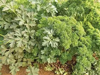 There are two basic types, curly leaved Petroselinum crispum and the flat-leaved or Italian parsley P. neapolitanum. The former is usually used as a garnish and the Italian type for adding to dishes, smoothies and so on. It is sweeter and has a stronger flavour.