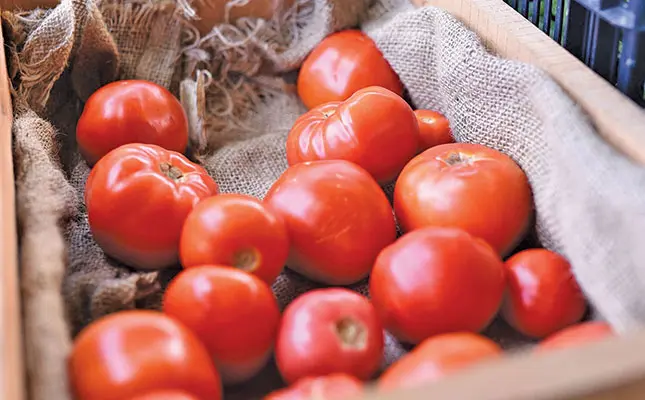 - Processing tomatoes: These plants are seldom trellised, and the row widths are determined by the straddle of the tractor and spray-rig, as well as the vigour and vine length of the cultivar used. To prevent trampling during spraying and harvesting, ensure that plant growth is confined to the tops of the bed, and does not spill over into the path of the machinery. A plant spacing of 300mm to 500mm in rows 1,2m apart will provide a population of between 16 000 and 28 000 plants/ha.