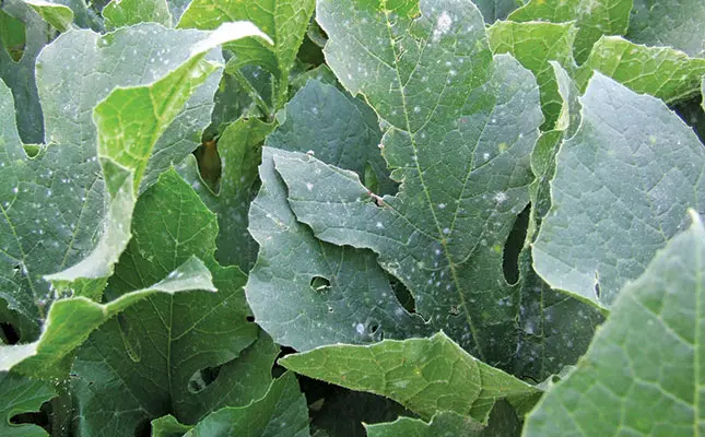 The final thing to look out for is pumpkin flies. These lay eggs under the skin of developing fruit, destroying it or making it unmarketable.