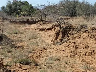 In the footslope, the soil has been waterlogged as a result of the long-term accumulation of clay, which does not allow water to infiltrate. Plants that grow here must adapt their root systems to grow sideways above the hard clay layer. These imperfectly drained soils have a high erosion potential.