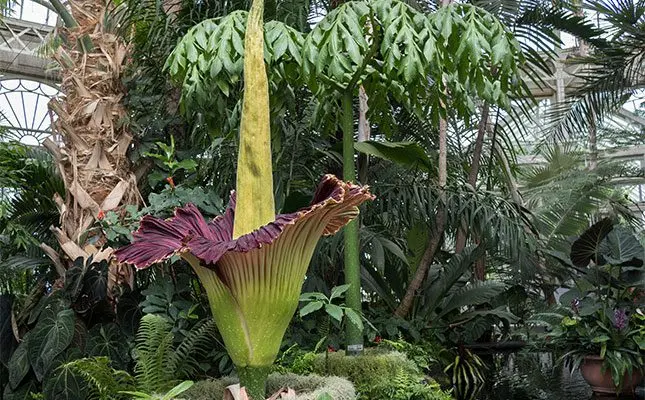 Part of the arum family, the massive corpse flower (Amorphophallus titanum) from the jungles of Sumatra has many weird attributes that are well-aligned with its bizarre appearance.