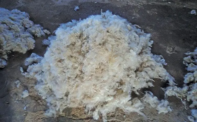 The price of properly fluffed mohair is only about 5% lower than for clean hair, provided it has been micron-tested. In the case of heavily caked mohair, break the lumps and pull them apart. This will improve the hair.