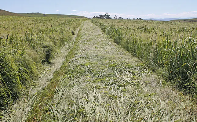 “On our farm, the natural sourveld can produce an average of 2t/ha/year of dry matter for grazing. In contrast, the planted pastures we harvest for stored fodder yield between 5t/ha/year and 7t/ha/year of dry matter. But the sourveld grazing is free, whereas it costs money to grow and make stored fodder. That’s why it must be utilised as efficiently as possible.”