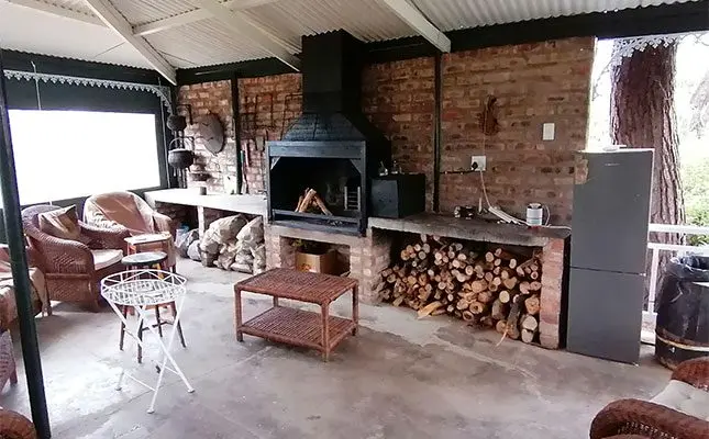 The Small Cottage was allocated to Farmer’s Weekly. It has a fully equipped kitchenette sufficient for self-catering, a bathroom with a shower and bathtub, seating, and a small table with chairs outside on the stoep. A sleeper couch in the lounge area is available for a child. A small gas stove can be used for making coffee or tea during load-shedding.