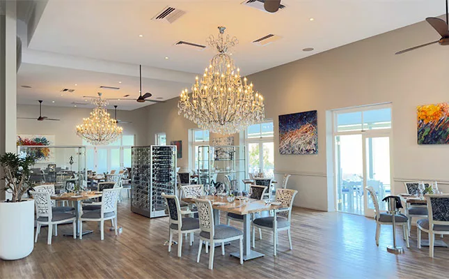 While the lunch menu in Sansibar is concise, the cheese and charcuterie platter and the crispy, tempura-battered fish are highly recommended. Enjoy hand-cut fries with dipping sauces, including a heady truffle-infused mayonnaise.