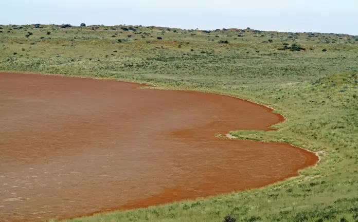 “Do you see the heart shape?” asks Visser as he stands at !Xaus Lodge overlooking the dry red pan below.
