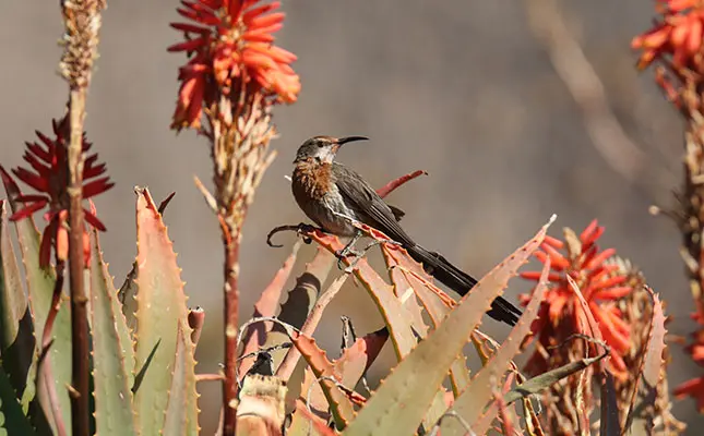 “And one of our much-loved species in the southern and south-western Cape is the Cape sugarbird [Promerops cafer], which darts between protea bushes to find nectar.”