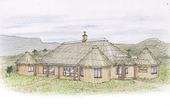 There is a vacation place in South Africa called Chapizi, in the far north of the country, that has rondavels for their guests similar to what I am referring to. The third rondavel should be a full kitchen and the last a study/library.