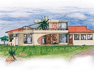 The site is in Northern KZN. It is approximately 50m x 70m and slopes up from the road and more or less level at the top. It has an east view to the sea and green valleys/cane fields to the west. We would like a stylish, modern, contemporary home with large glass windows, and some feature rockwork panels where appropriate.