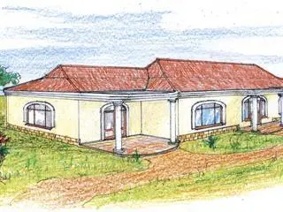 Majola also requested that the styling of the resurrected home feature a ‘touch of Tuscany’. Shown in the sketch is the internal, slightly revised, layout within the existing 7m x 11m outer wall. Most of the door and window spaces have been retained, but have been adapted to a Tuscan style.