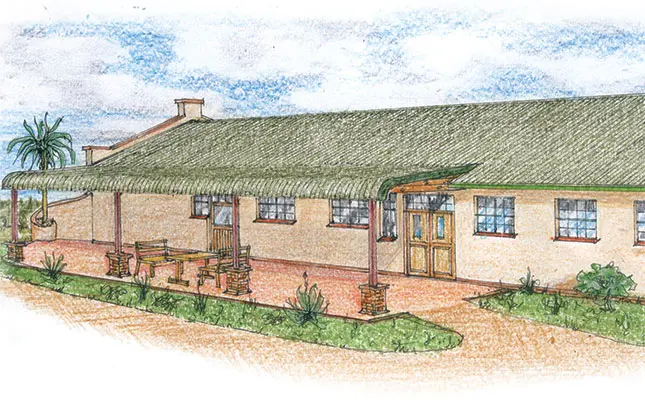 The braai/entertainment facility is housed in a separate building away from the shop, and situated in an environmentally-friendly nook, but close enough to the main kitchen for cost-effectiveness.