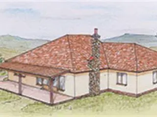 The styling is typically that of farm homes. The roof over the veranda is corrugated. Let me know if you require any further changes, as with usable material and perhaps the windows and doors from the demolished cottage.