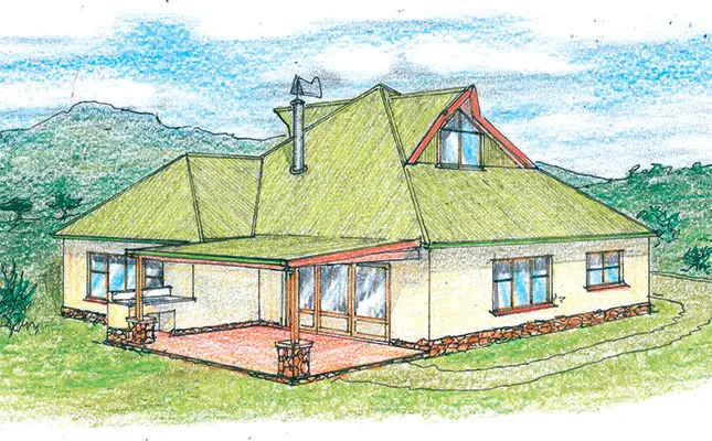 In the sketches herewith, I’ve kept the floor layout compact but functional, which is ideal for day visitors. Tourists will probably be out sightseeing for most of the daylight hours and come back only in the late afternoon. Therefore a small functional kitchen and outside braai facility should be adequate for catering purposes.