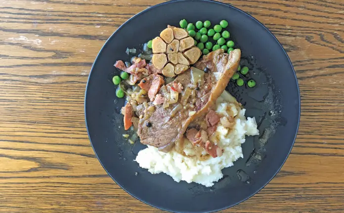10 Drop the oven to 120°C and let it gently simmer for three hours, or until the chuck