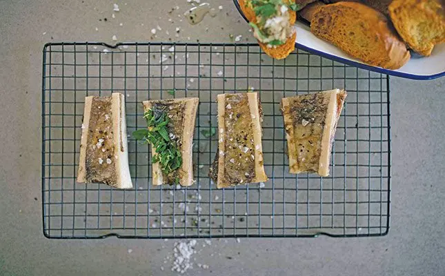 - Place the marrow bones with the flesh side down on the grid and braai for around four minutes over the hot coals.