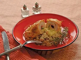 Chop and fry the mushrooms, and combine with the arboria rice to make a risotto. Lay a bed of this on each warmed plate and top it with one or two Chicken Kievs. Partially cut through the kievs with a sharp knife so that the hot, molten mozzarella cheese flows onto the rice. Garnish with pepper, a sprinkle of salt and a sprig of rosemary. A very cold Chenin Blanc will lift this meal into the culinary stratosphere. And hungry diners will find that there’s enough for seconds.