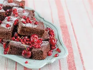 Remember that brownies are meant to be moist, dark and heavy. Mild underbaking is better than overcooking. Let the brownies cool, then sprinkle with castor sugar and cut into geometric shapes. What a total chocoblast!