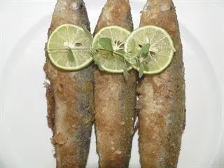 Remove and allow to drain briefly on clean paper towels. If your pan is big enough do all 12 fish at once, or cook them in batches using the warmer drawer of your oven to keep them warm. Garnish each fish with a thin slice of lime and a sprig of fresh origanum.This goes best with a fresh green salad and a chilled, crisp white wine.