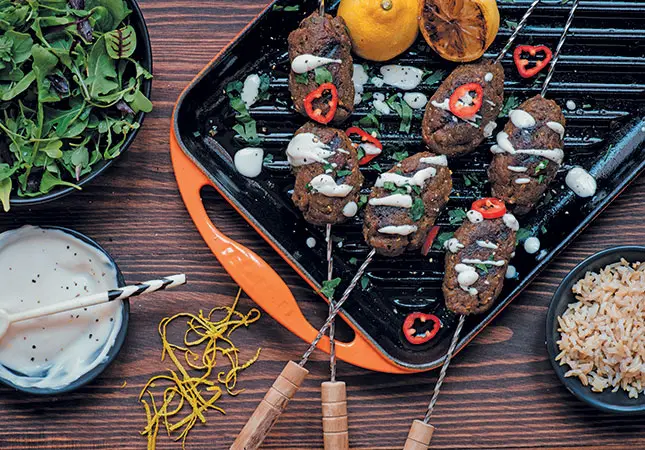 Cooking time. This ancient meal was originally designed for a three-stone hearth and real fire. So use a braai or place the kofta under a hot grill until ready. Serve drenched in the tahini yoghurt sauce, with brown rice and a green salad.