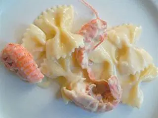 As soon as they are ready, lower the heat and pour in the cooked roux. Stir to generously coat all the langoustines. Add the cooked pasta, stir once again and serve at once after a light sprinkle of coarsely ground black pepper and salt if required.