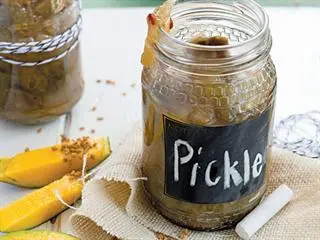When cutting the green fruit from the pip, take care not to include any of the pip in the final mix as it will contaminate the final production with its excessively sour taste. Choose a large mixing bowl and pour the mango slices, the rest of the ingredients and the methi masala into it. With a wooden spoon, mix it all well together.