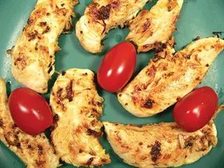 This should take about five minutes. Avoid overcooking as the tenderloins are lean and dry out very quickly. If you are planning to serve this as a starter, arrange three strips per plate with a few cherry tomatoes. Make a fresh bottle of red Tobasco available for those who want to rev up the marinade. Served cold, these marinated tenderloins lend themselves superbly to a lunchtime roll.