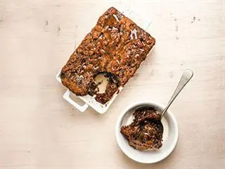 We begin with the dates. The first intervention is to remove the pips – with care! It takes just one date pip to crack a molar and ruin a meal. Place the de-pipped dates in a bowl and pour a cup of boiling water mixed with the bicarb over them. Let the bowl and its contents stand until cool. Stage two: place the three teaspoons of butter and the cup of sugar in the bowl of your electric mixer. Rev this until the contents have creamed. Lower the revs and add the eggs, one at a time.