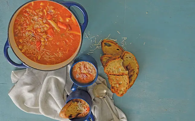 5 Add the freshly grated Parmesan cheese and stir it in. The soup will thicken a little due to the cheese and the pasta. Dilute it with a little water. Check the taste and add salt and pepper if you wish. Garnish with the chopped parsley, a gentle drizzle of olive oil and a little extra grated Parmesan. Serve with freshly baked sourdough bread.