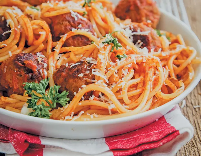 7 Serve the pasta in warmed bowls. Add the meatballs and the rest of the sauce. Complete the adventure with the remaining Parmesan cheese and a generous sprinkling of parsley.