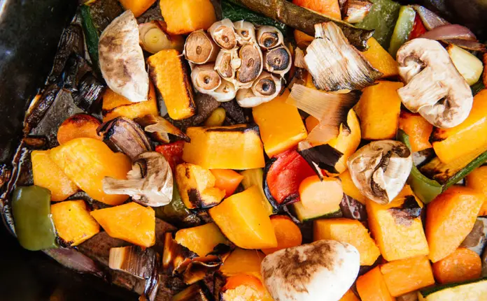 To make a platter of roast vegetables for four standard carnivores, you will need: