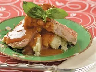 What about vegetables? Mashed potato goes well with a buttery, beery sauce, so serve the fillets on a layer of mashed potato and drench the plate with the sauce. The effect is impressive, needing only a single leaf of fresh basil to garnish the repast.