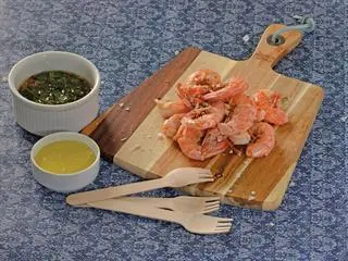 To make roasted prawns with two dipping sauces for four diners, you will need: