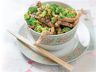 Remove and immediately repeat with the second batch of meat, also for 90 seconds. Return the first batch to the wok then pour in the sauce and the blanched broccoli. Stir- fry for 60 seconds, sprinkle some freshly ground black pepper over the meal and serve immediately, either on its own or with the carbohydrate (noodles? rice?) of your choice.