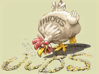 Consumers in the developed world prefer white breast meat. So huge surpluses of dark meat pile up in warehouses, and these are then sold to the developing world at way below the cost of production. Without a doubt, this is dumping. Thus, the dietary habits of the developed world and its preference for white meat are exported to us, and jobs are lost here.
