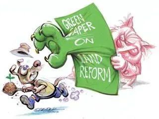 The Green Paper on Land Reform has primarily arisen due to the failure of current land reform legislation, such as land being claimed and purchased on behalf of claimants, and then their farm failing. Most government officials say the Green Paper is an attempt to bring about land reform by improving past and current initiatives without significantly disrupting agricultural production and food security.
