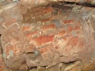 A cave on the farm Burley in the Barkly East district is home to a large panel of paintings, some of which have been scribbled over with charcoal.